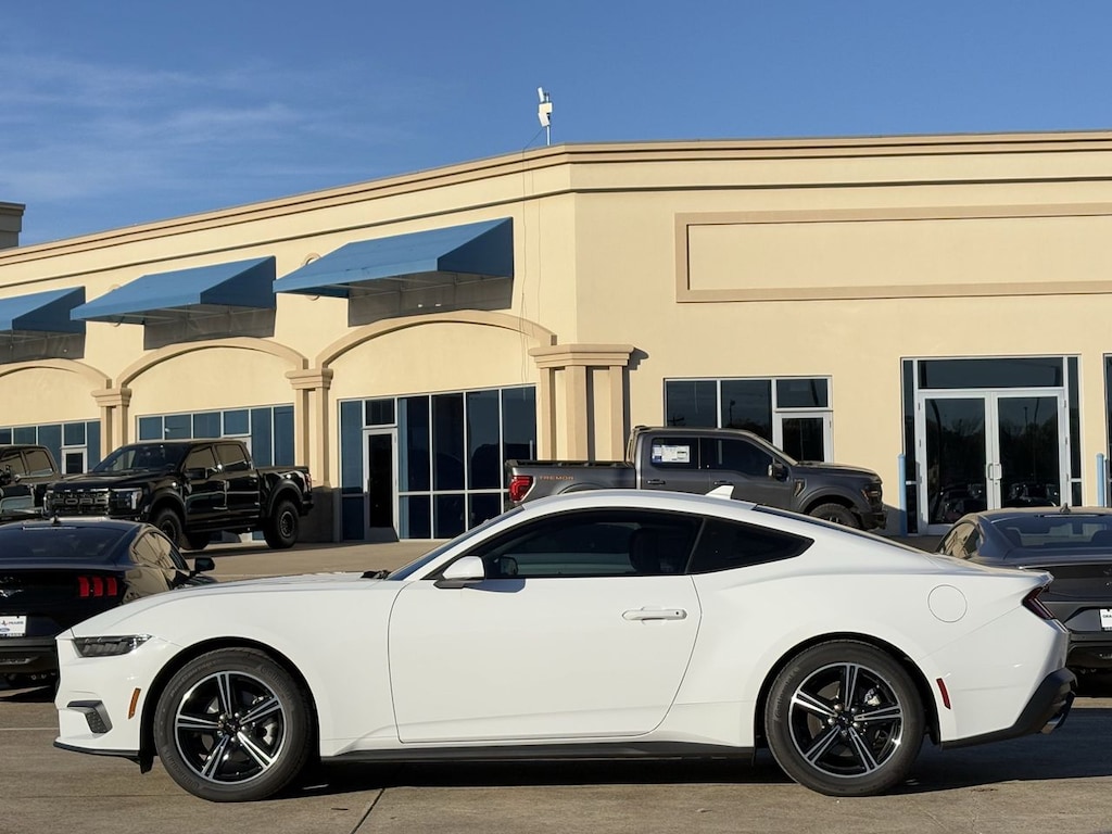 Step into the future of driving with the 2025 Ford Mustang EcoBoost, a masterpiece engineered for those who crave the exhilarating rush of the open road. This new Mustang, with its Ecoboost 2.3L I4 GTDI DOHC Turbocharged VCT engine, offers an unparalleled blend of power and efficiency, making every drive a memorable adventure. The 10-speed automatic transmission ensures seamless gear shifts, providing you with the precision and control that Mustang enthusiasts demand. The Oxford White exterior not only turns heads but also accentuates the iconic silhouette of this 2D coupe, embodying the Mustang's legacy of timeless design. Inside, the cockpit is crafted for those who live for the thrill, with advanced technology and driver-focused features that enhance the driving experience. Whether you're navigating city streets or taking on winding country roads, the 2025 Mustang EcoBoost promises a dynamic ride that resonates with the heart of a true driving enthusiast. Feel the power, embrace the precision, and discover why the Mustang continues to be the definitive symbol of American muscle and innovation.